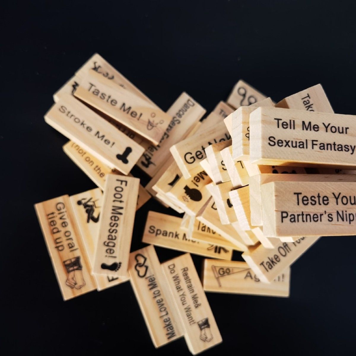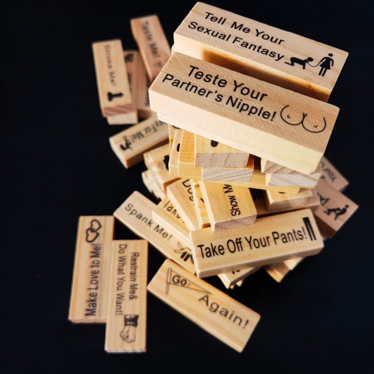 Spice up your next night in with a flirty twist on a classic game. Each block reveals a playful prompt, pose, or intimate challenge designed to bring you closer—one pull at a time. Laugh, connect, and heat things up as you build your tower… and your chemistry.
